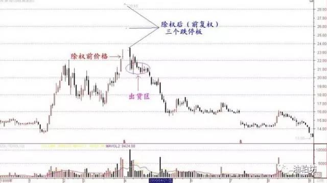 Sure enough, within days, Shenzhen Saige began its ascent. In just 10 trading days, the price rose from 20 yuan to 33 yuan. The rights registration date was March 31, 2000; that day, the stock touched 36.5 yuan and closed at exactly 35 yuan — perhaps not a coincidence. In the three trading days after ex-rights, exactly as we'd discussed, the stock produced three consecutive gap-down "limit-down" days.