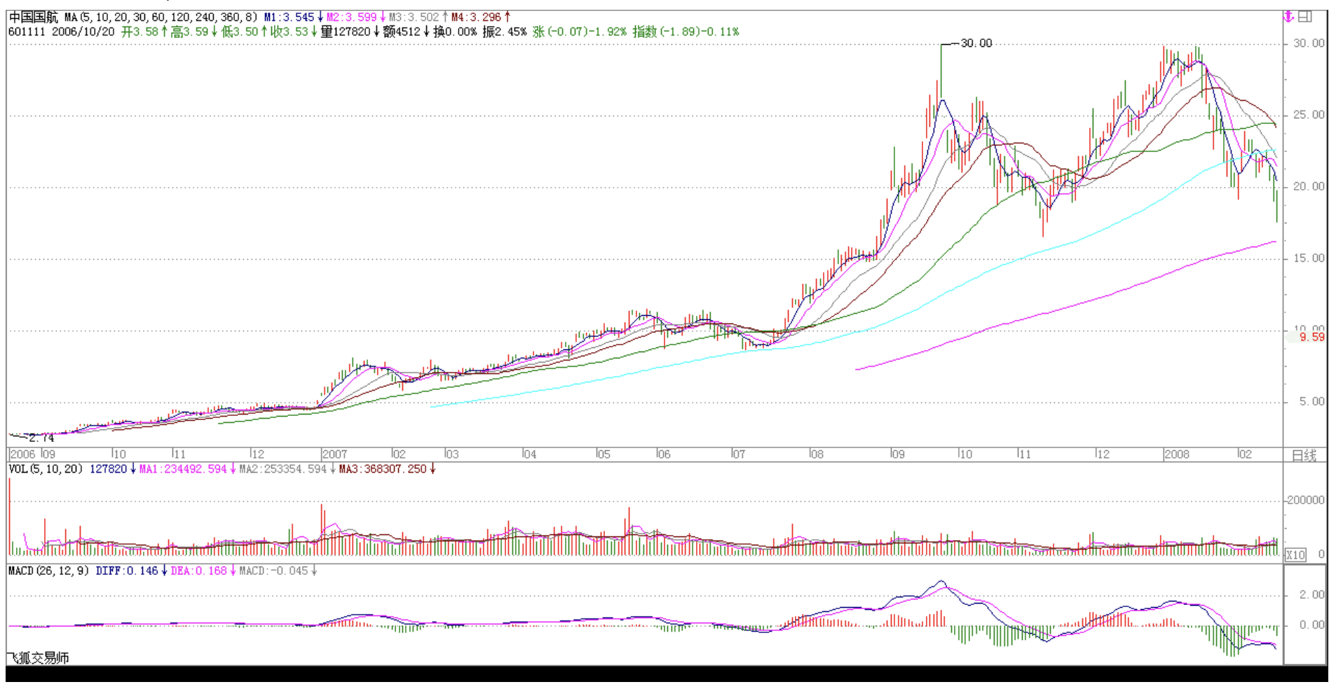 Once a stock starts rising, don't casually sell it. Mid-term, if it hasn't even broken below the 30-day moving average, it proves the trend is very strong, and you should hold it. Of course, if your skill level is a bit higher, you can play short-term swings based on short-term indicators during the rise, which increases your capital utilization rate. But if you sell at the highs, as long as the mid-term chart hasn't broken down, you must buy back on pullbacks — especially for stocks that haven't yet shown acceleration. There's a principle for selling stocks, divided into two situations: the first is for slow, steady advances — once acceleration kicks in, you need to constantly watch for selling opportunities; the second is when the first wave is an explosive rise, and after a correction, once the second wave shows divergence or massive volume, you must be careful and look for opportunities to exit. The specifics of execution are a matter of timing and feel — you must experience it yourself. It's like making soup: the matter of timing can't be taught, only experienced in practice. Also, you must never have emotional attachment to stocks you've sold. Stocks are like men — use them and toss them. Never get emotionally attached.