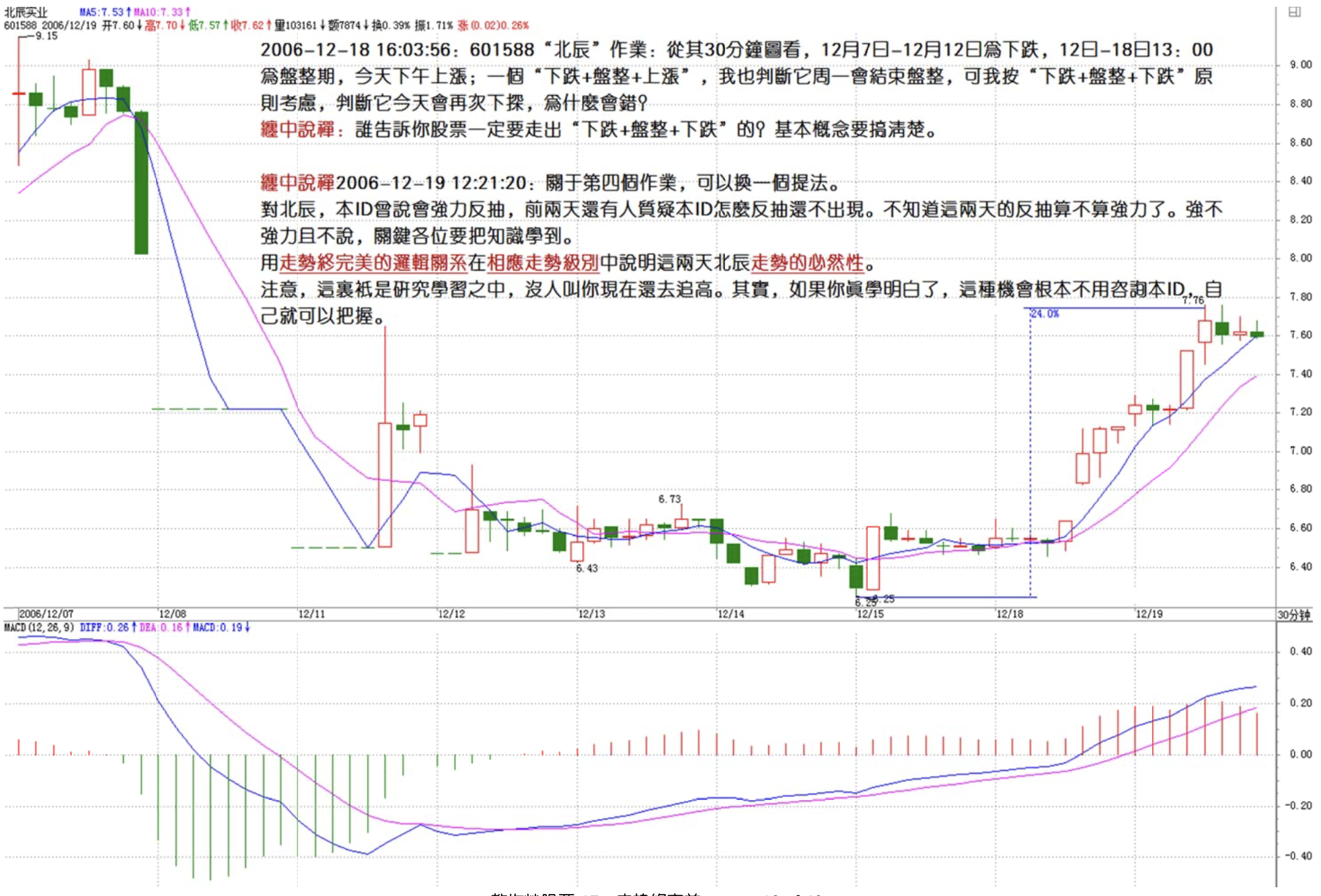 Because in actual operations, what you face is always vivid and present. And as the Analects says, "Those who practice knowledge and virtue are few!" One must directly face this present, vivid reality to create. At the present moment of any movement, whether the preceding pattern was consolidation or a trend, there is always a dilemma: will it continue extending or change? For example, when already in a trend, will that trend continue or transform into the opposite trend or consolidation? This kind of question at the present-moment level is eternally "non-anxious"—non-positioned. Anyone who claims to have solved this dilemma is as ineffective as claiming on Earth to be unaffected by gravity. This is something anyone facing technical charts must always remember. But this dilemma's "non-anxiety," under the "non-anxiety" of "all levels of movements can be decomposed into trends and consolidation," becomes its "anxiety," and can therefore be positioned (for understanding this, refer to this ID's corresponding Analects chapter interpretations). Precisely because the present movement is a dilemma—in the dynamic process from imperfection to perfection—this constitutes the basis for its "non-anxious" positioning. "All trends must complete," and movements can be "non-anxiously" decomposed into trends and consolidation. In other words: "trends must eventually complete, and consolidation must also eventually complete."