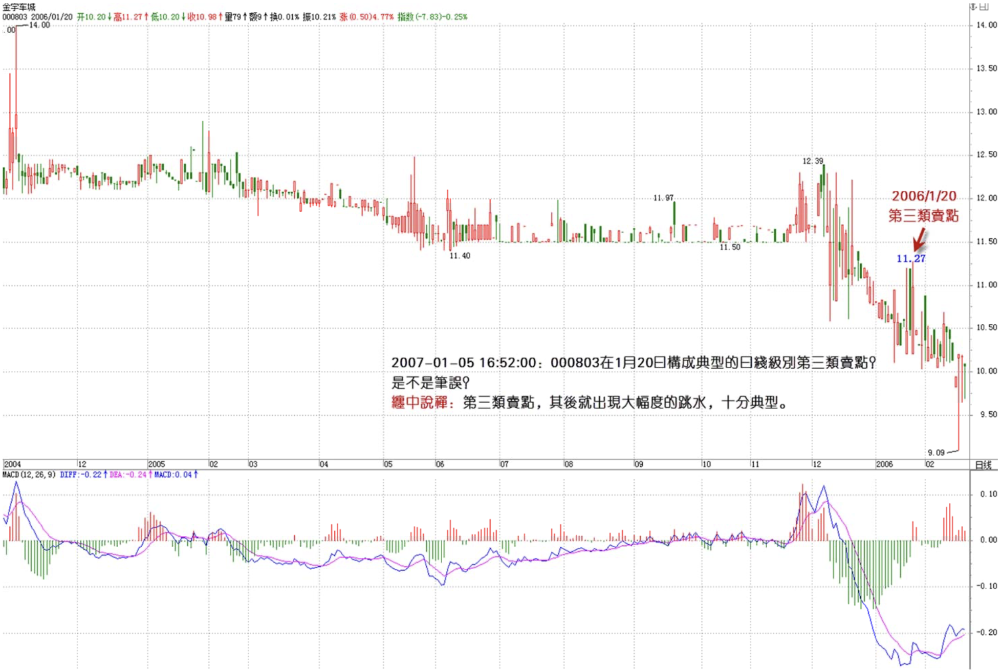 000803 formed a classic daily-level third-type sell point on January 20?