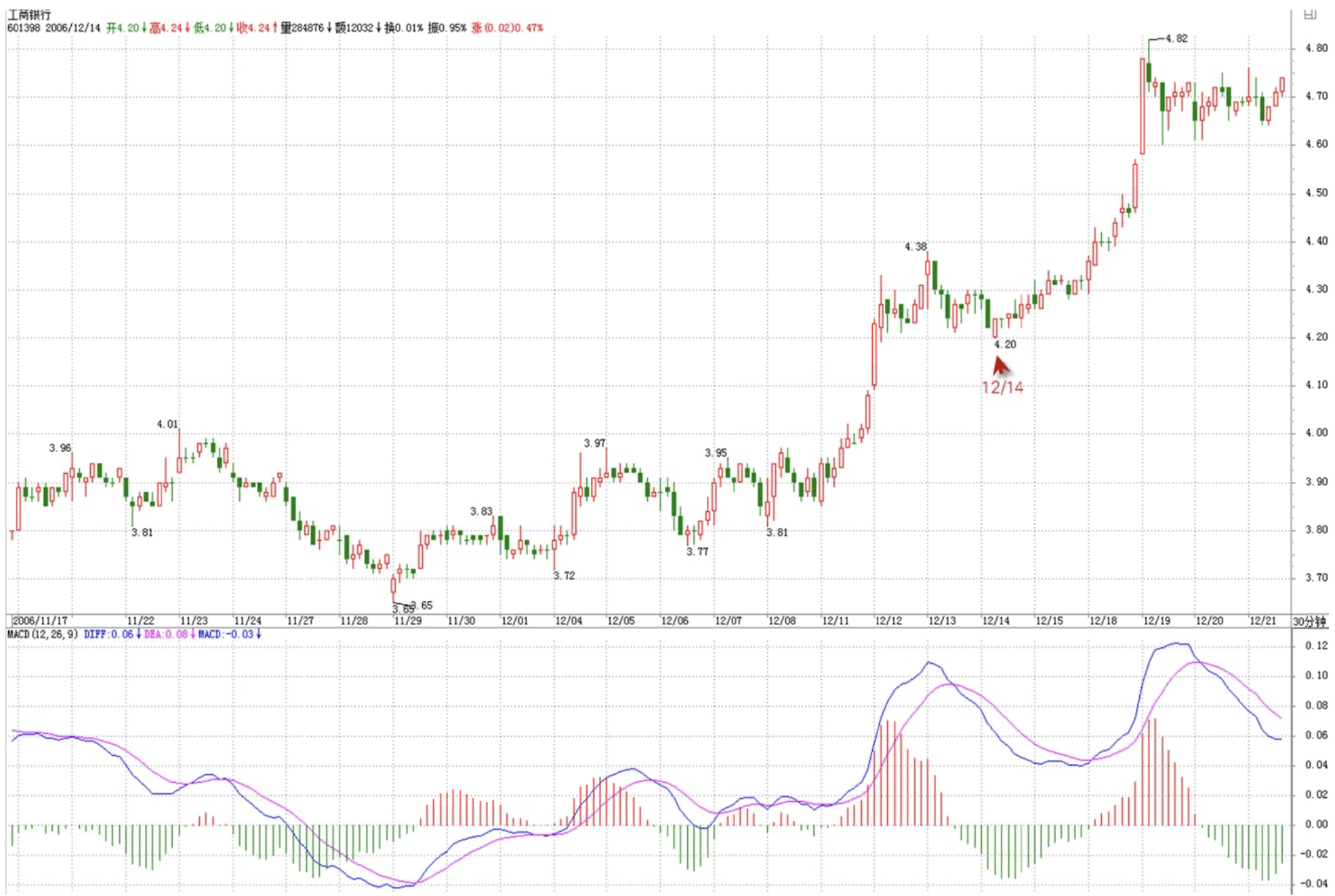 Treated ICBC like Shenzhen Development Bank — mid-term holding until before Spring Festival. Been studying MM's old posts daily — benefited immensely. Unfortunately, still got trapped by greed. How embarrassing!