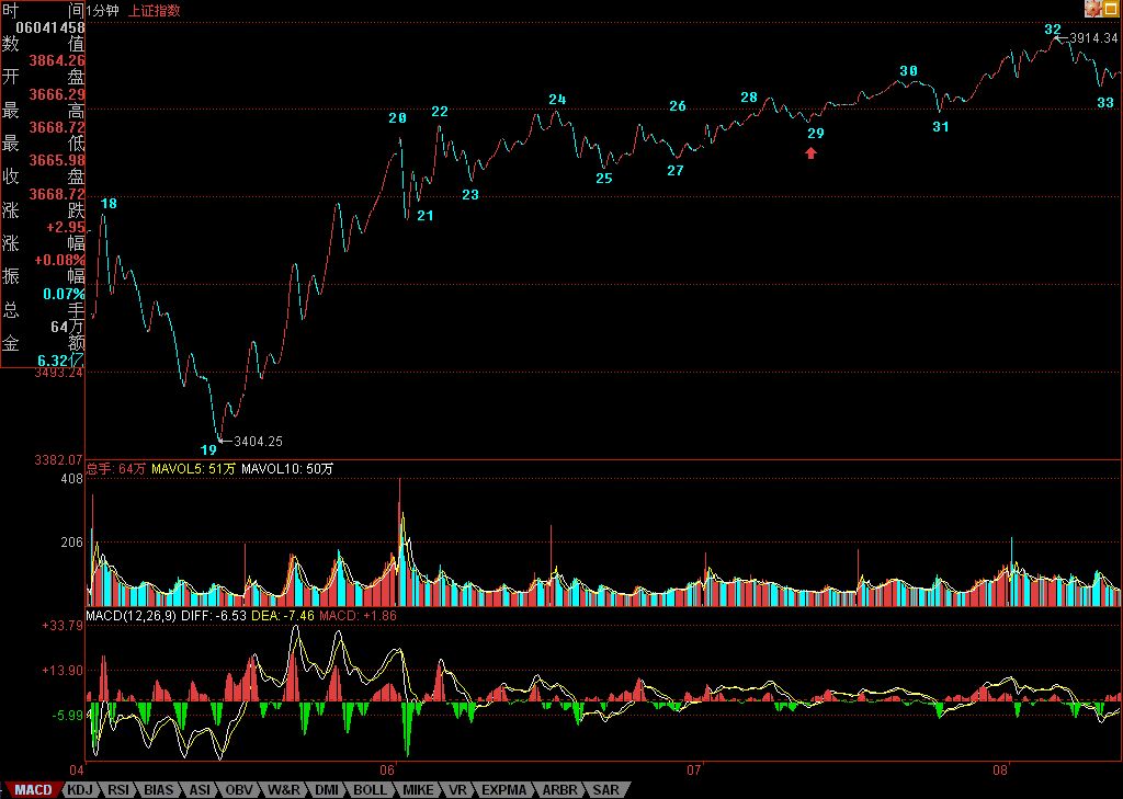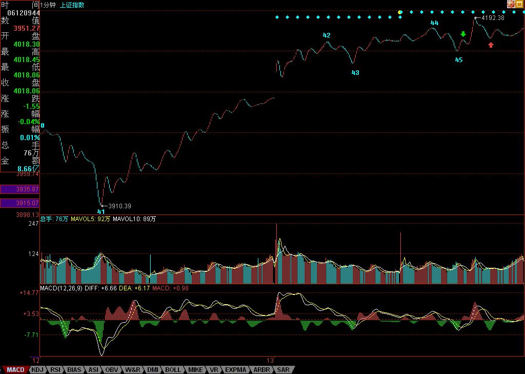 From the above analysis, there's a clear conclusion for short-term movement: as long as the oscillation around the 42-45 1-minute hub doesn't produce a third-type sell point, or even if it does, the subsequent expansion doesn't touch the oscillation range of the 22-31 five-minute hub — then the market's oscillation is strong, and even if a 30-minute or higher-level hub ultimately forms, it would develop at minimum around the 42-45 1-minute hub. Otherwise, the market would use the 22-31 five-minute hub's oscillation range as a base to expand into a 30-minute level hub, and the corresponding movement would be relatively weak. As for specific operations, you can use hub oscillation methods, choosing the appropriate hub level based on your operational level.