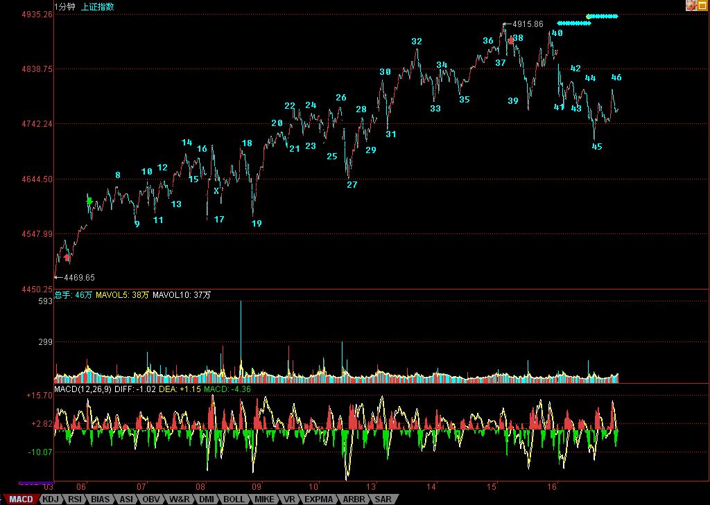 On the market trend, if point 16 is broken, then forming a 30-minute hub oscillation becomes the only option. In other words, if 4700 points isn't breached, there's still the possibility of forming a new 5-minute oscillation at the current position — meaning the original 5-minute uptrend could still be maintained. Therefore, the magnitude of the short-term pullback depends on this 4700-point level.