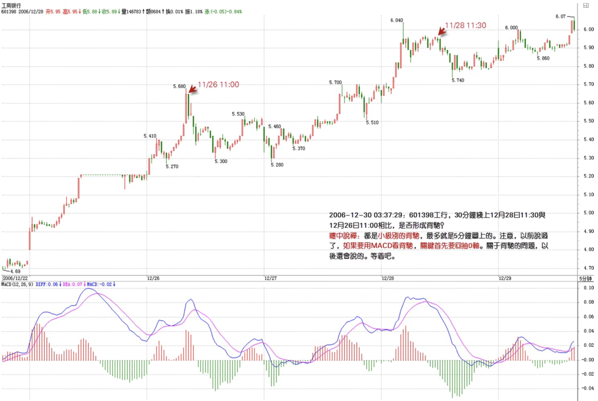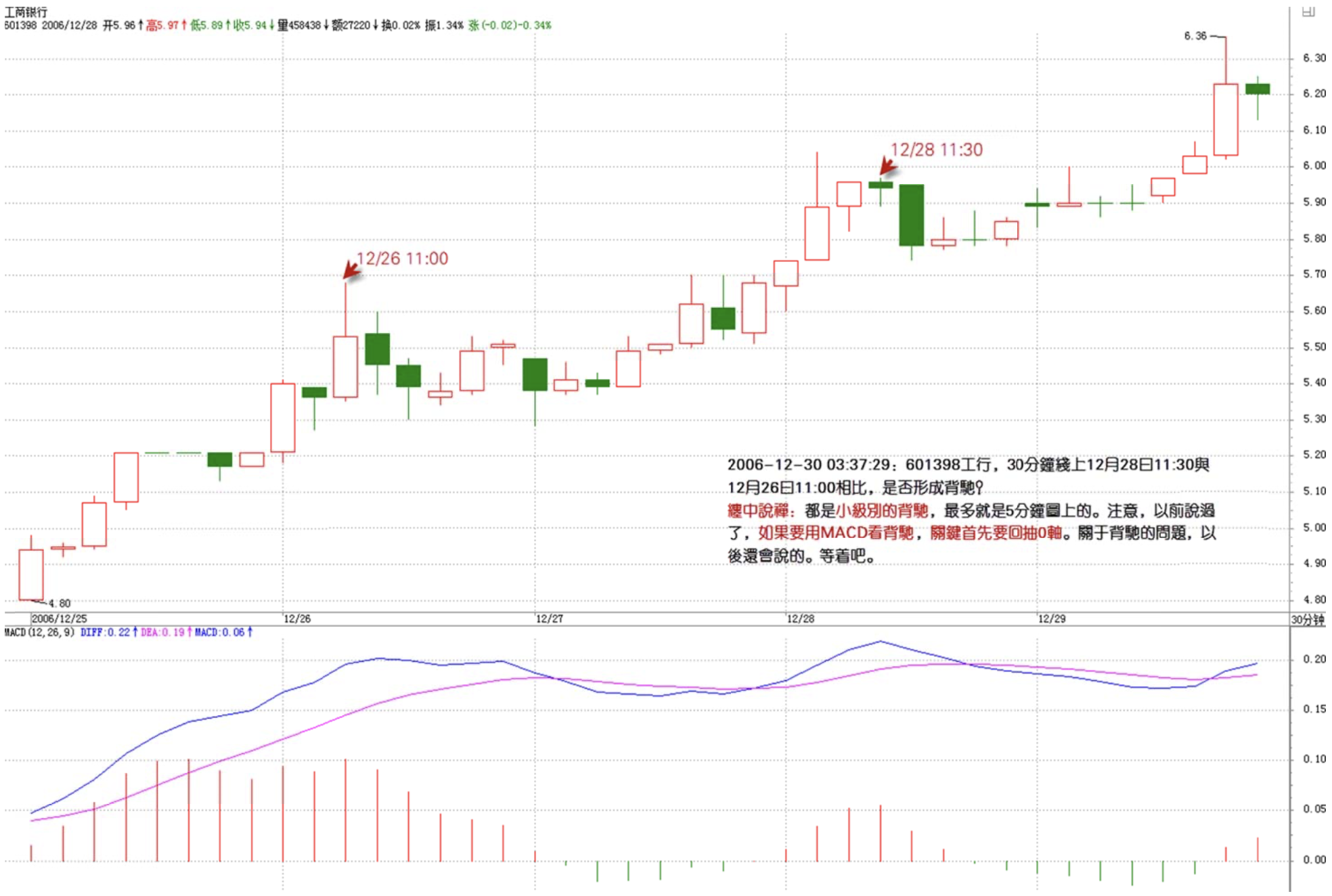 On 601398 ICBC's 30-minute chart, comparing 12/28 11:30 with 12/26 11:00, is there a divergence?