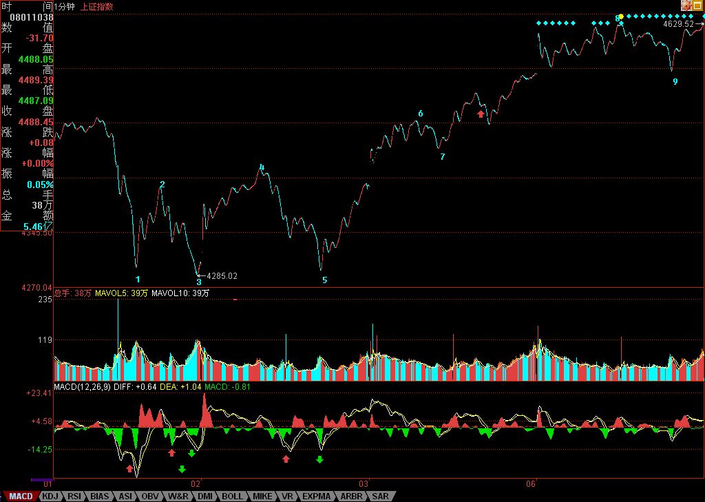 For short-term moves, looking at the chart below makes everything clear. The line segment formed by strokes 8-9, and the upward-trending movement formed by the line segment of strokes 6-7 below — of course this trend can continue extending until a new 1-minute hub forms, but the prerequisite is that the subsequent upward push doesn't form a quasi-divergence. Otherwise, at least a 1-minute level hub oscillation will form at the current position. Whether divergence occurs is the focus for the next couple of days. Once divergence forms, a major oscillation is inevitable.