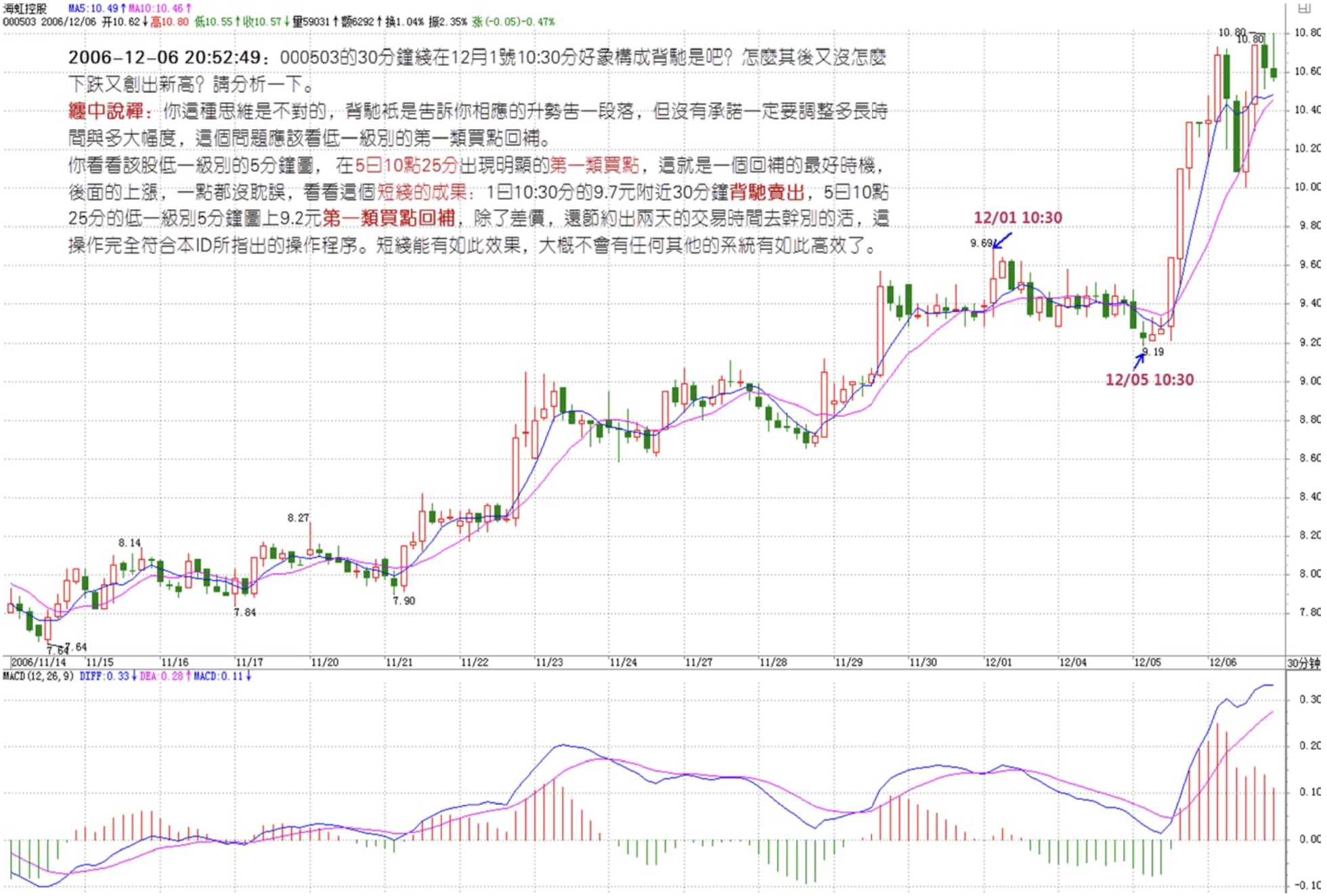 Numbers mm, on the 30-minute chart of 000503, does it appear that a divergence formed at 10:30 on December 1st? How come it didn't decline much afterward and made new highs instead? Please analyze, mm. Thank you.